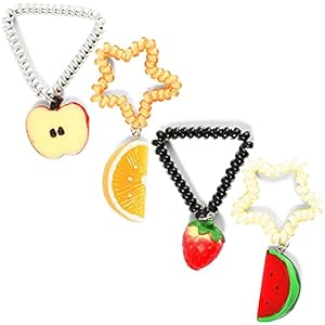 Telephone Cord Hair Ties, Fruit Hair Accessories (4 Pack)