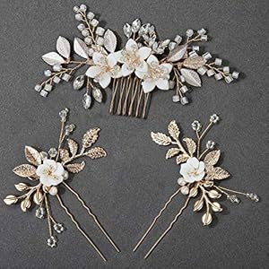 SWEETV Handmade Bridal Hair Comb and Pins Set, Wedding Hair Accessories for Brides Bridesmaid