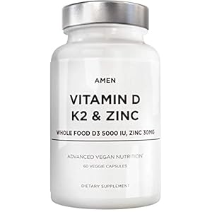 Amen Vitamin D, K2 & Zinc, Cholecalciferol D3 5000 IU, Organic Whole Food Blend with Apple, Blueberry, Cranberry…