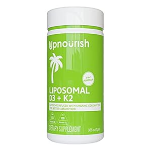 UpNourish Liposomal Vitamin D3 K2 MK7 365 Softgels – VIT D3 5000 IU + K2 100 mcg with Organic Coconut Oil – K2 D3…