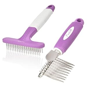 Poodle Pet Bundle – Dematting Fur Rake Comb Brush Tool for Detangling Matted or Knotted Undercoat and Dog Grooming Rake…